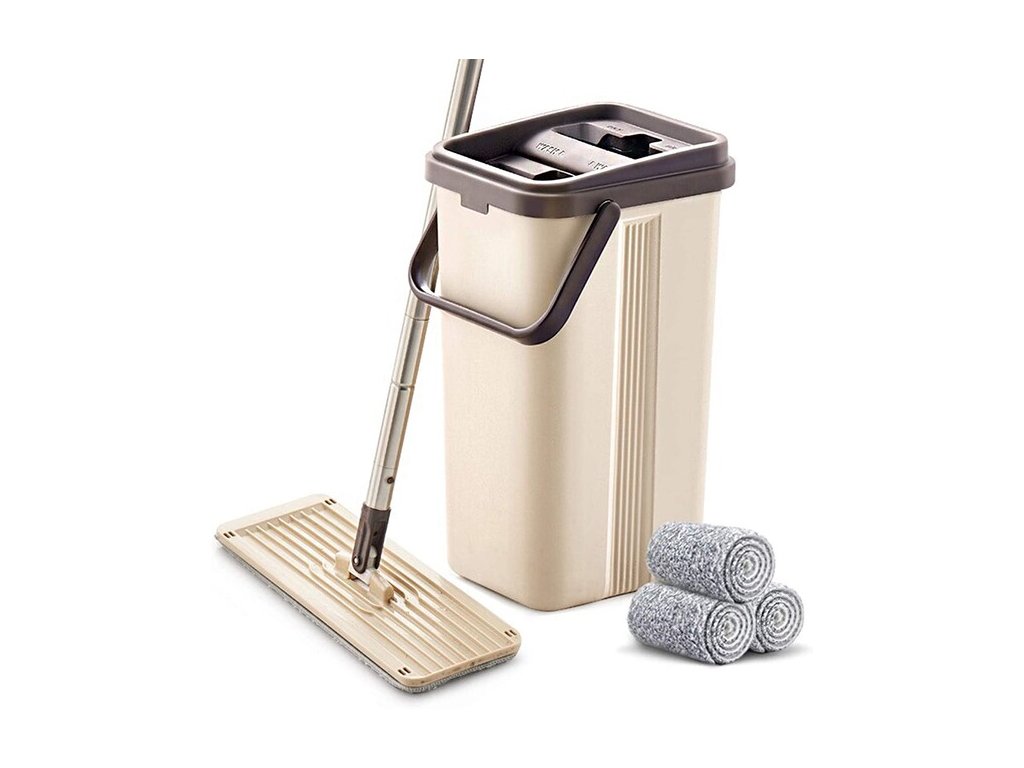 MOP SET plochý s vedrom pre bezdotykové žmýkanie, KRÉMOVÝ rok 2021